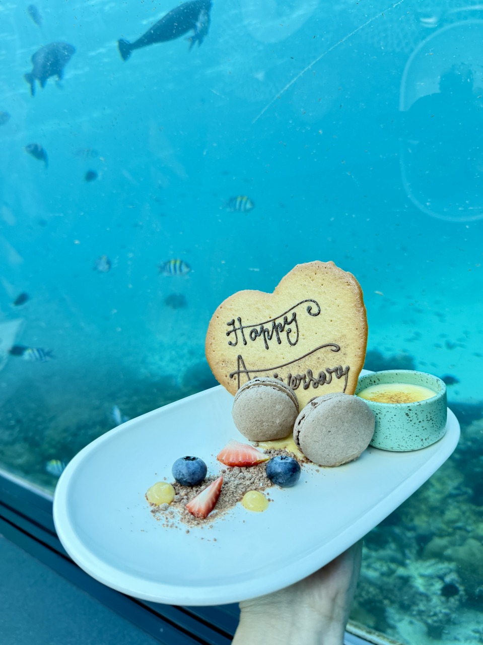 海の中の幻想的な空間で、おいしい料理とともに、大切な記念日を祝っえるなんて、心に残る最高の演出でした🥰